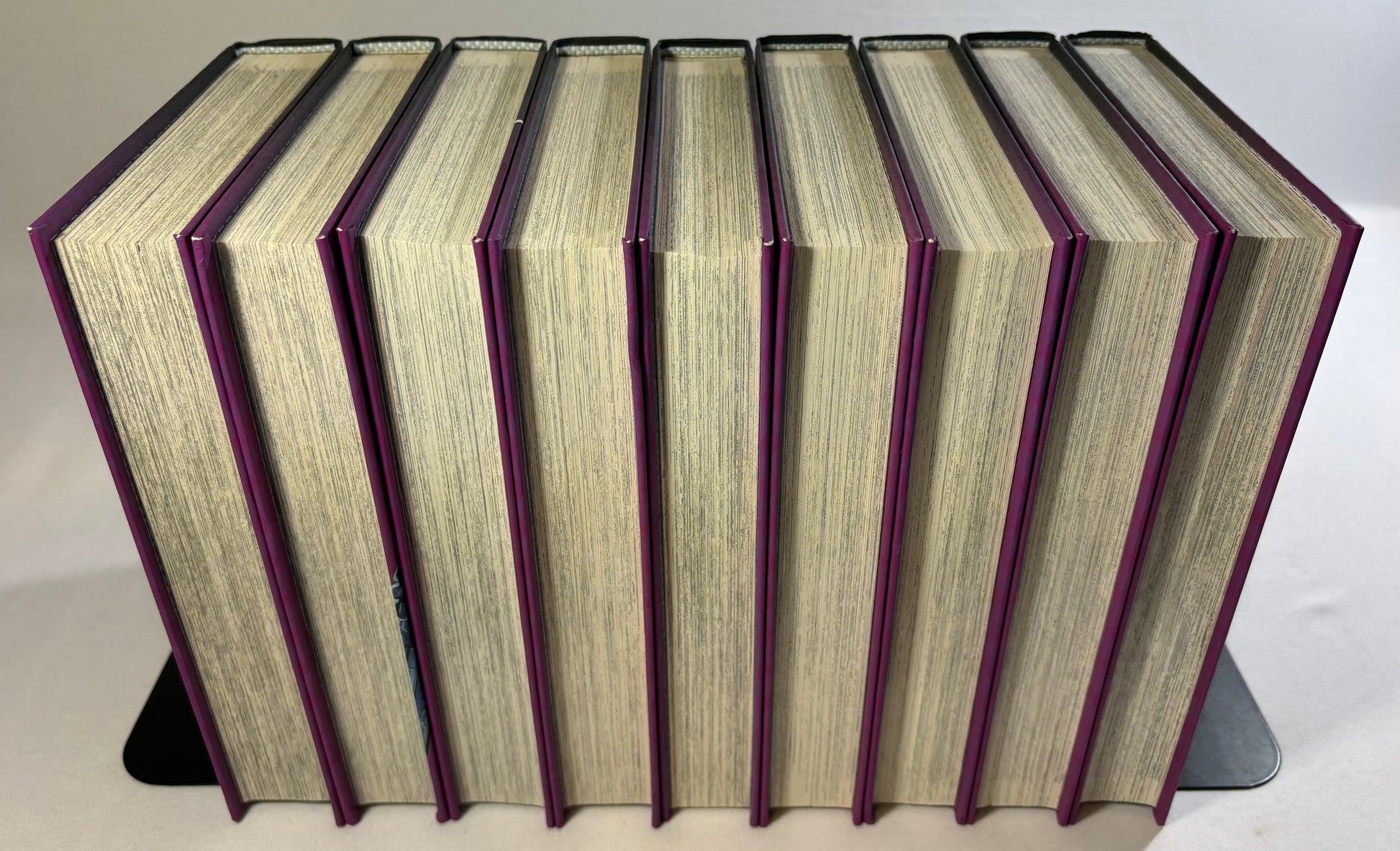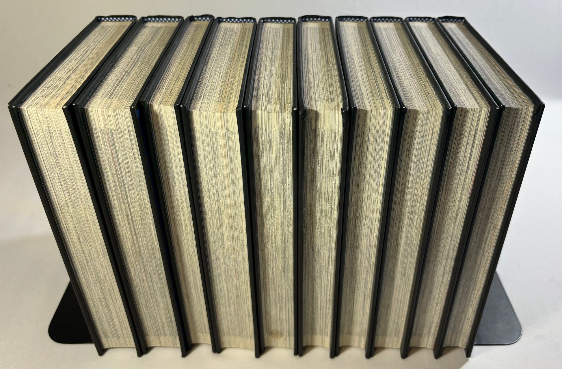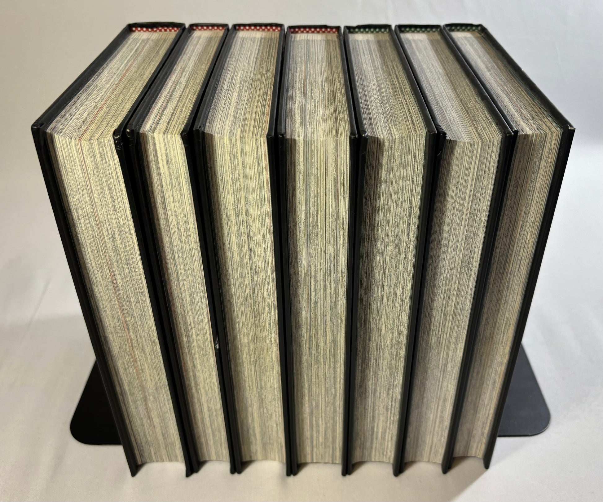 A used set of Jojo's Bizarre Adventure Hardcovers parts 1-5 complete. There is minor wear, yellowing, and some cover damage pictured.