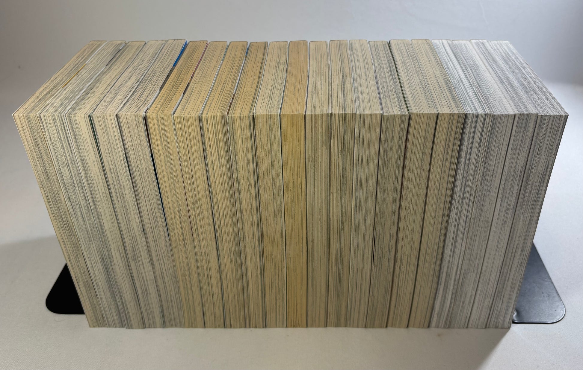 A used set of The Melancholy of Haruhi Suzumiya volumes 1-20 in the English manga printed by Yen Press. The set includes The Misfortune of Kyon Koizumi. There is shelfwear and yellowing present on all volumes with notable damage pictured. Pictures reflect condition.